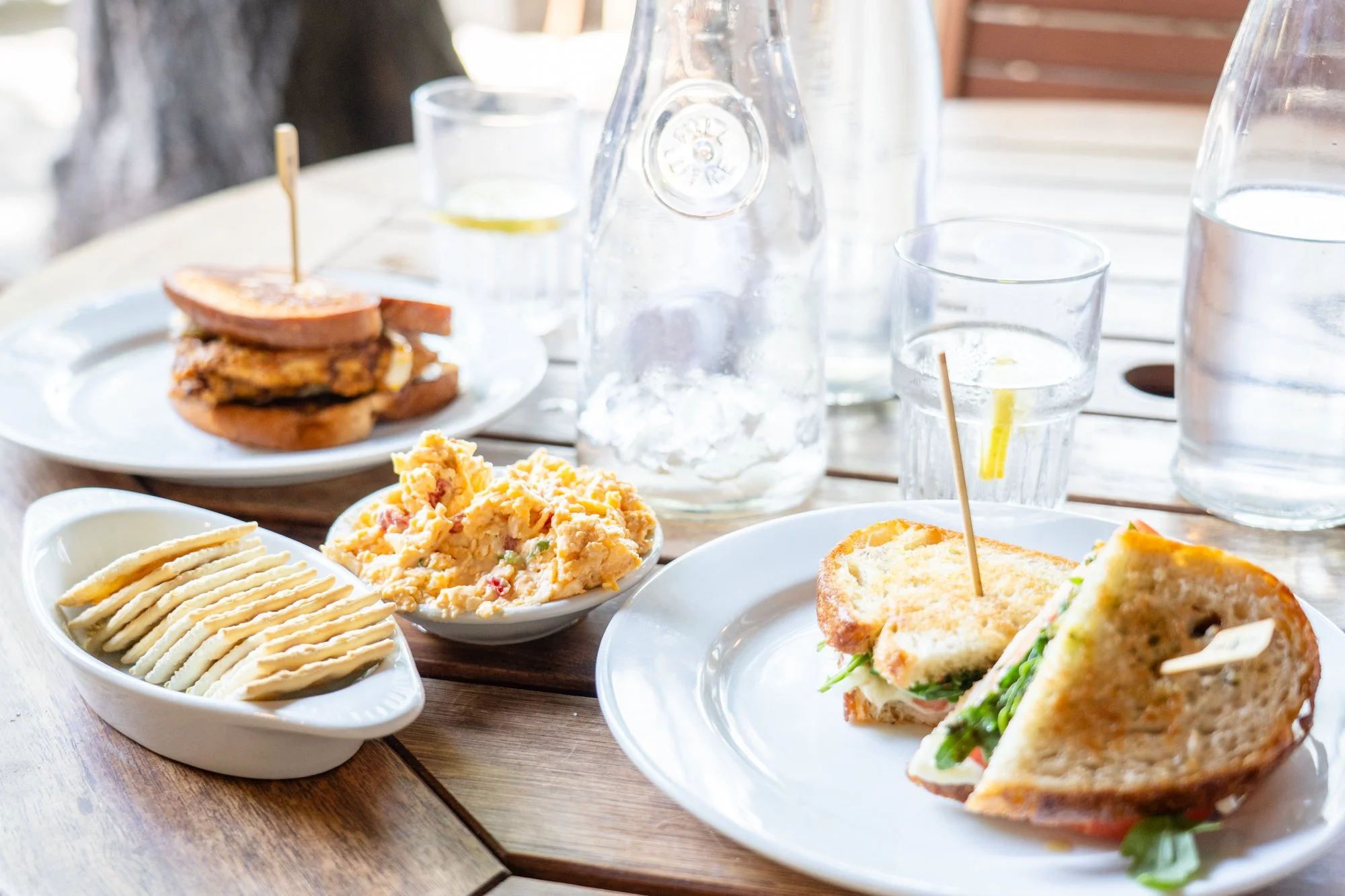 Hunger pangs led us to The Blind Tiger, where not only humans but also our furry friends are welcome to indulge in a culinary feast. Looking at the pub from the street, you wouldn’t guess that it’s pet friendly. But, a quick walk through the door and down the hall leads you to the pet-friendly courtyard. This offered a refreshing oasis for our pups to chill out with a bowl of ice water. The food here is quite delicious. I had the Caprese Panini, my husband had the Nashville Hot Chicken, while we shared a serving of Pimento Cheese. Meanwhile, Hannah tried to swipe our food like a pro - no success though. (She did get some yummy Bocce’s Bakery treats though that we also got at Crew LaLa).